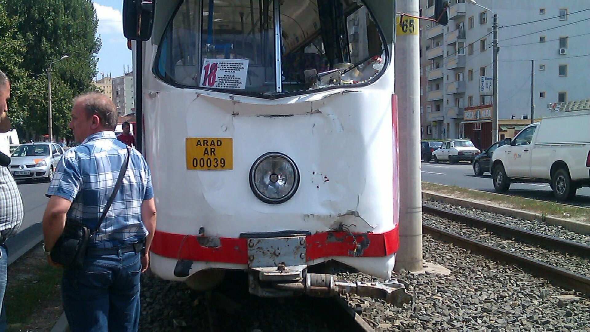 Panica printre pasagerii din doua tramvaie care s-au ciocnit, cu putin timp in urma, pe Calea Aurel Vlaicu din Arad.