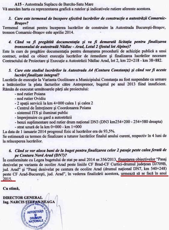 Intr-un document primit de stirileprotv.ro/vest, care cuprinde raspunsuri formulate de conducerea CNADNR referitoare la finantarea si stadiul unor lucrari, se arata clar ca in 2014 nu vor fi alocati bani pentru cele doua pasaje.