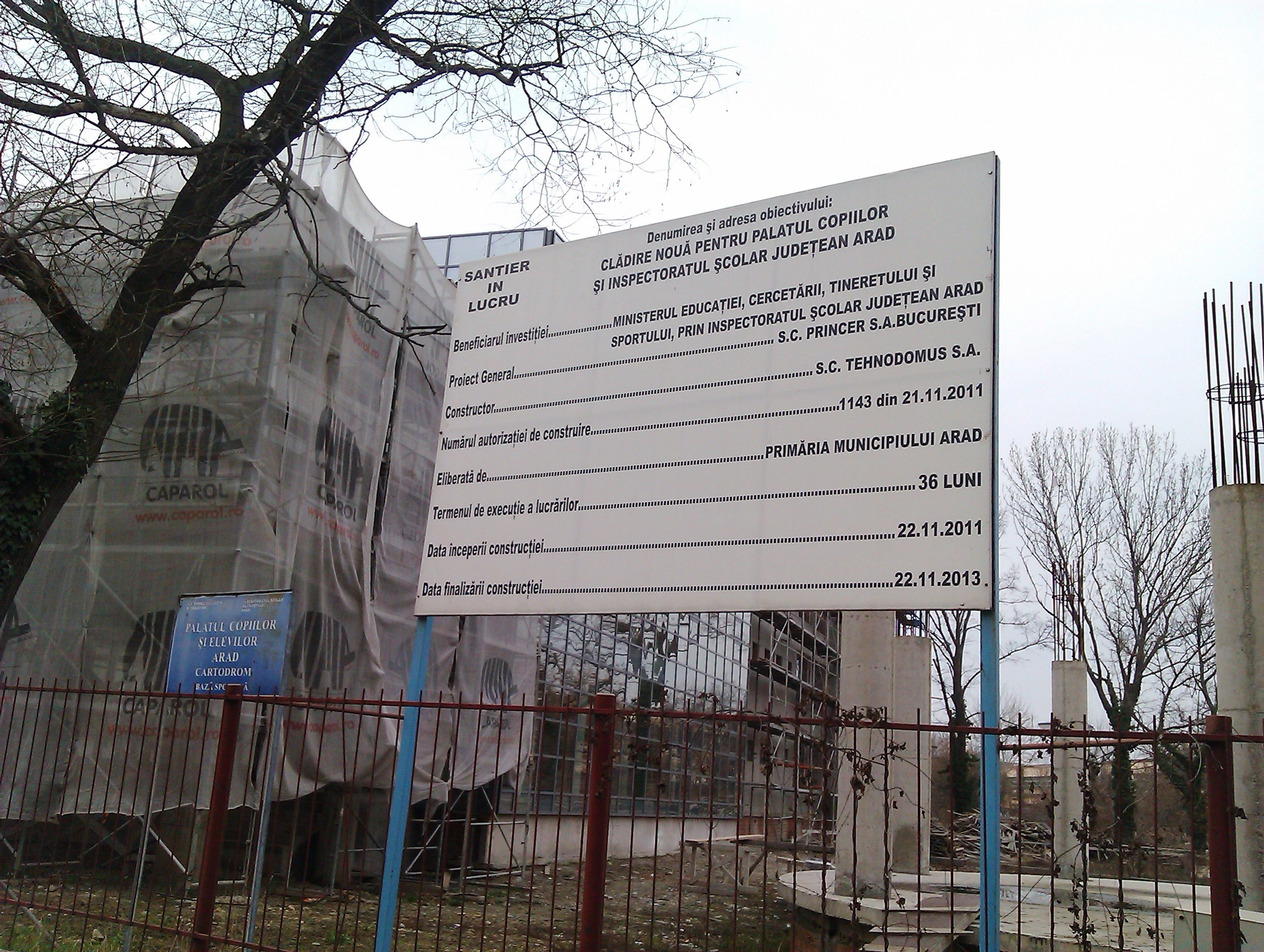 Mariana Tocaciu, purtator de cuvant ISJ Arad: “Pana cand vor aparea clarificari privind aplicarea legii descentralizarii, lucrarile la Palatul Copiilor au fost suspendate. Avand in vedere ca intregul proiect de 24,5 milioane lei beneficia de o finantare in transe, s-a decis sa se finalize mai intai doar cladirea Inspectoratului Scolar”.