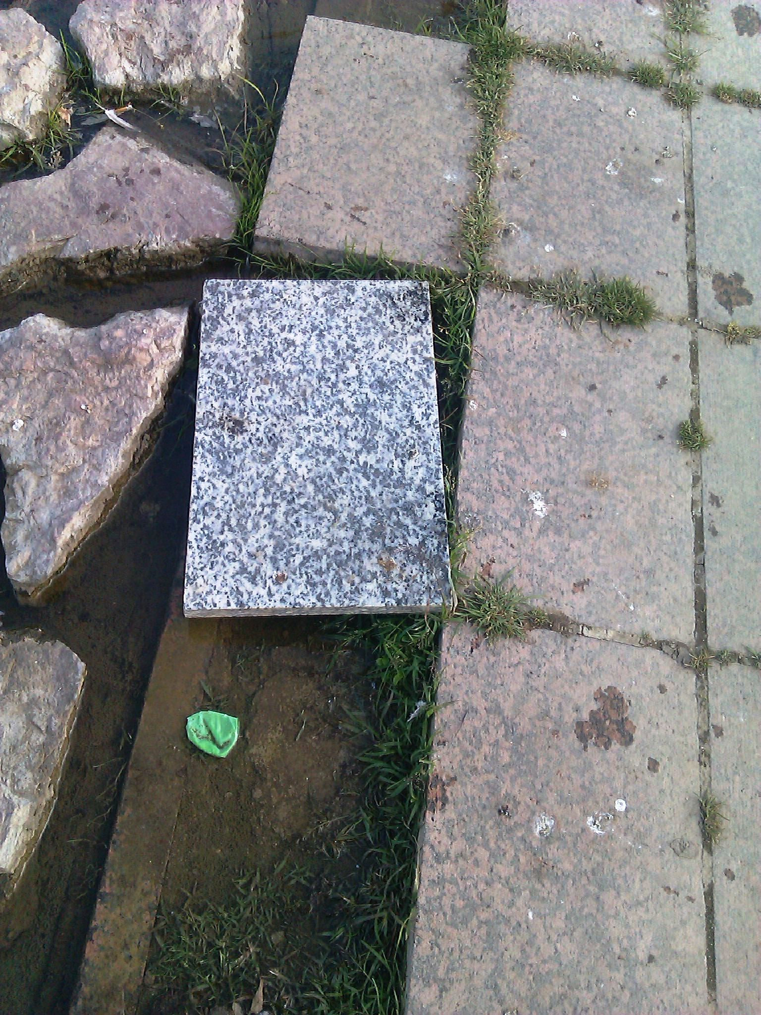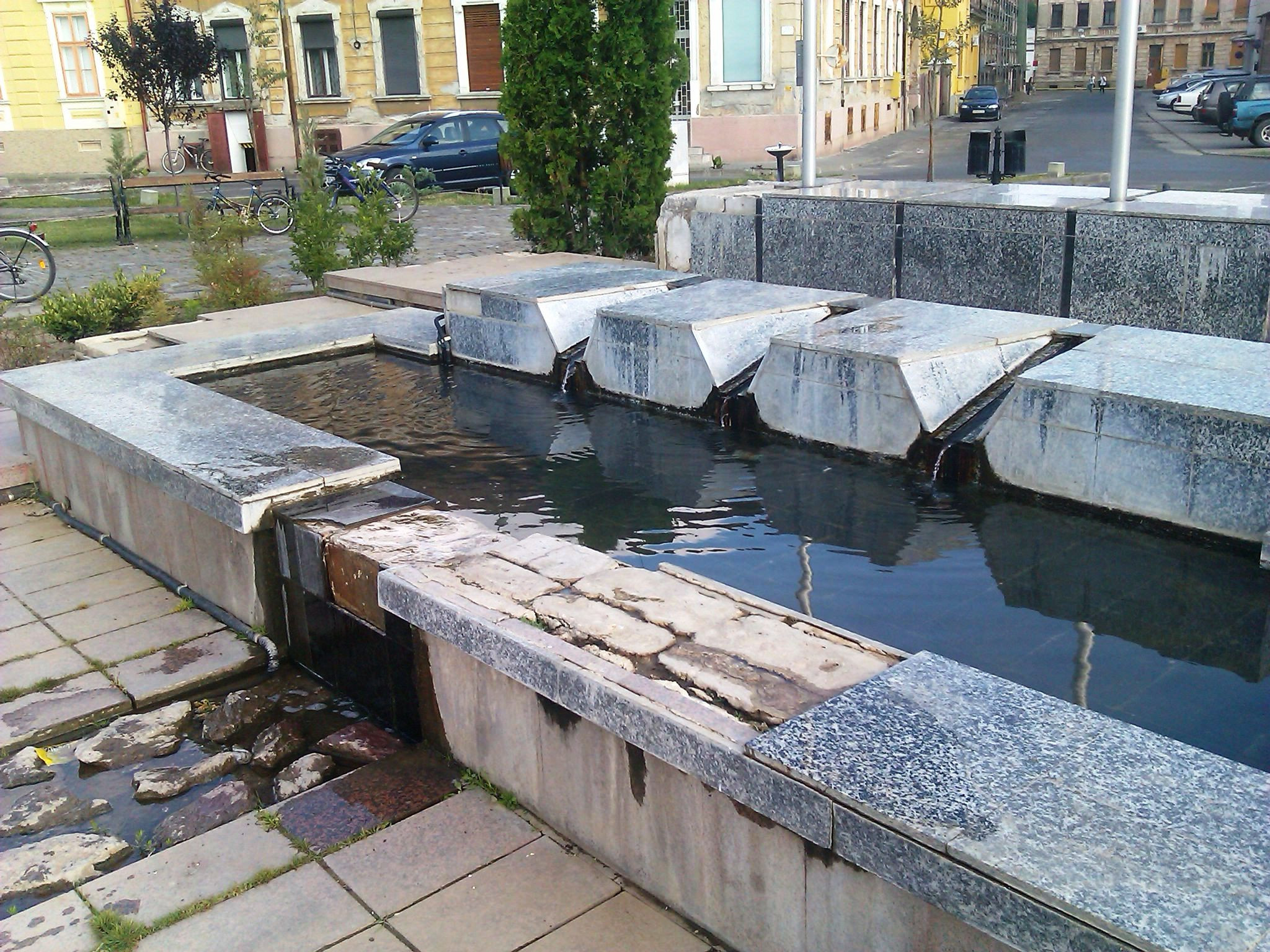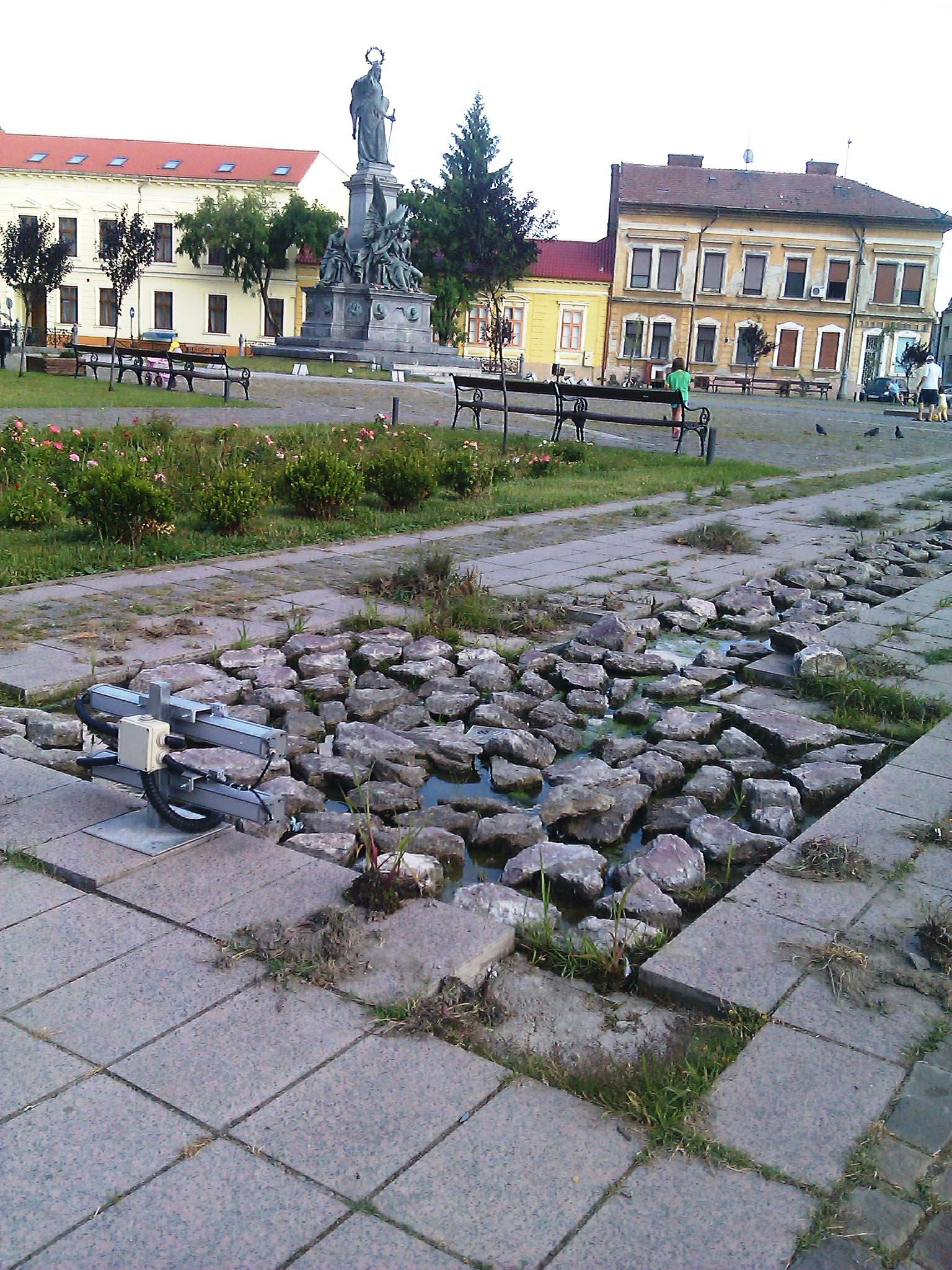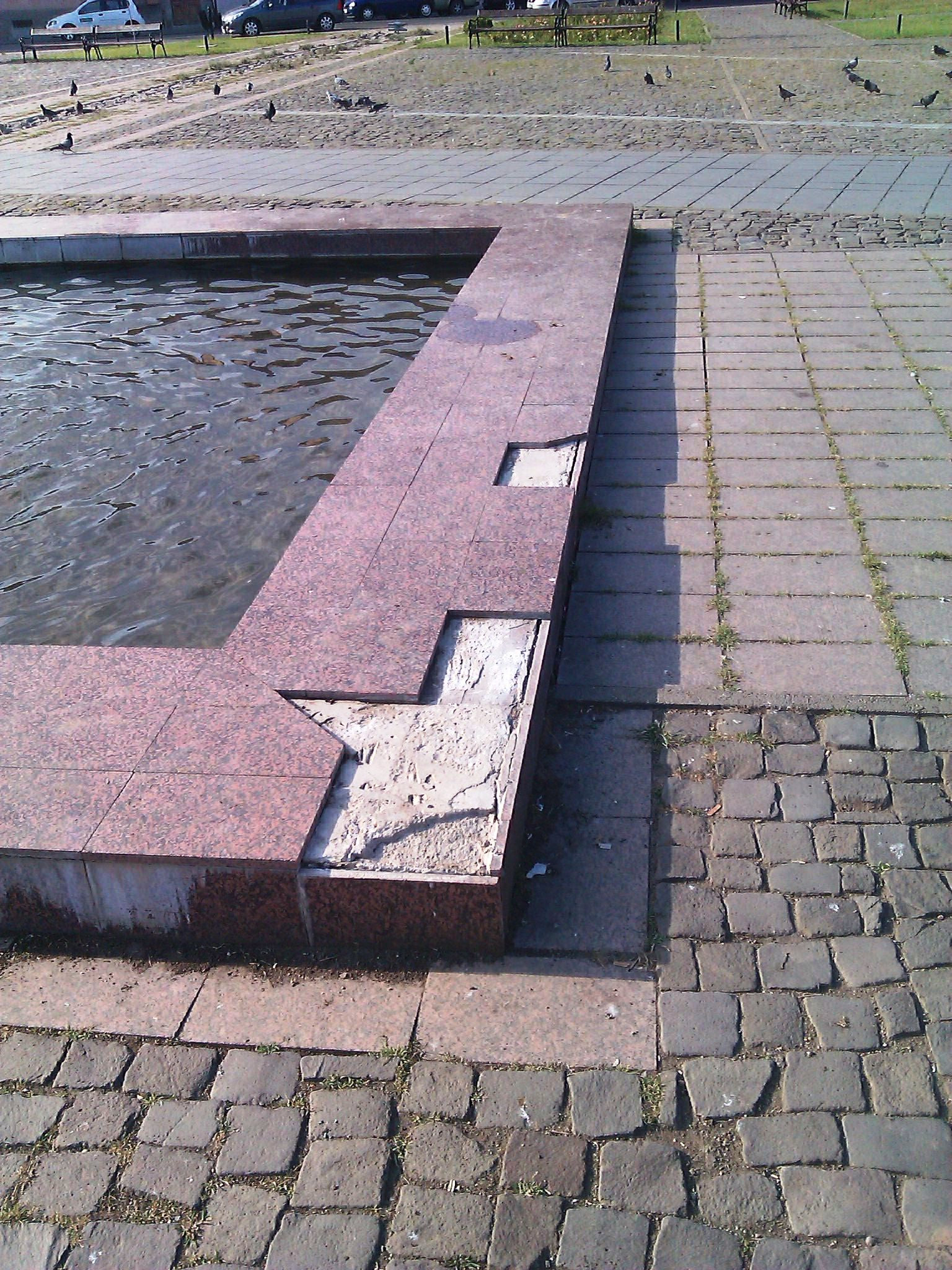 Nici portdrapelul nu arata mai bine, baza acestuia – din care tasnesc trei jeturi de apa ce se scurg prin rigole in bazin – fiind marcata de lipsa multor placi de gresie.