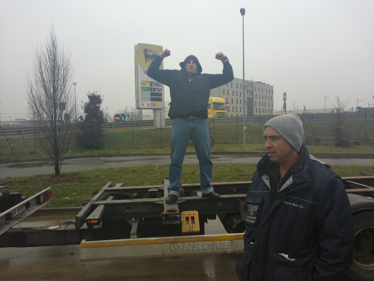 Angajatii sunt din diferite judete ale Romaniei, iar cativa dintre ei au venit astazi in tara pentru a se adresa autoritatilor din Arad, unde figureaza cu adresa, firma, in timp ce restul protesteaza de trei zile pe marginea autostrazii din Brescia.
