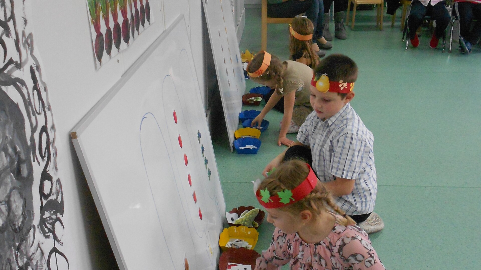 Fiecare grupa a avut oaspeti si daca unii au organizat expozitii de fructe si legume personificate, altii au realizat colaje de toamna. La final, copiii au fost rasplatiti pentru inventivitatea lor, de catre educatoare, cu prajiturele si fructe de sezon.