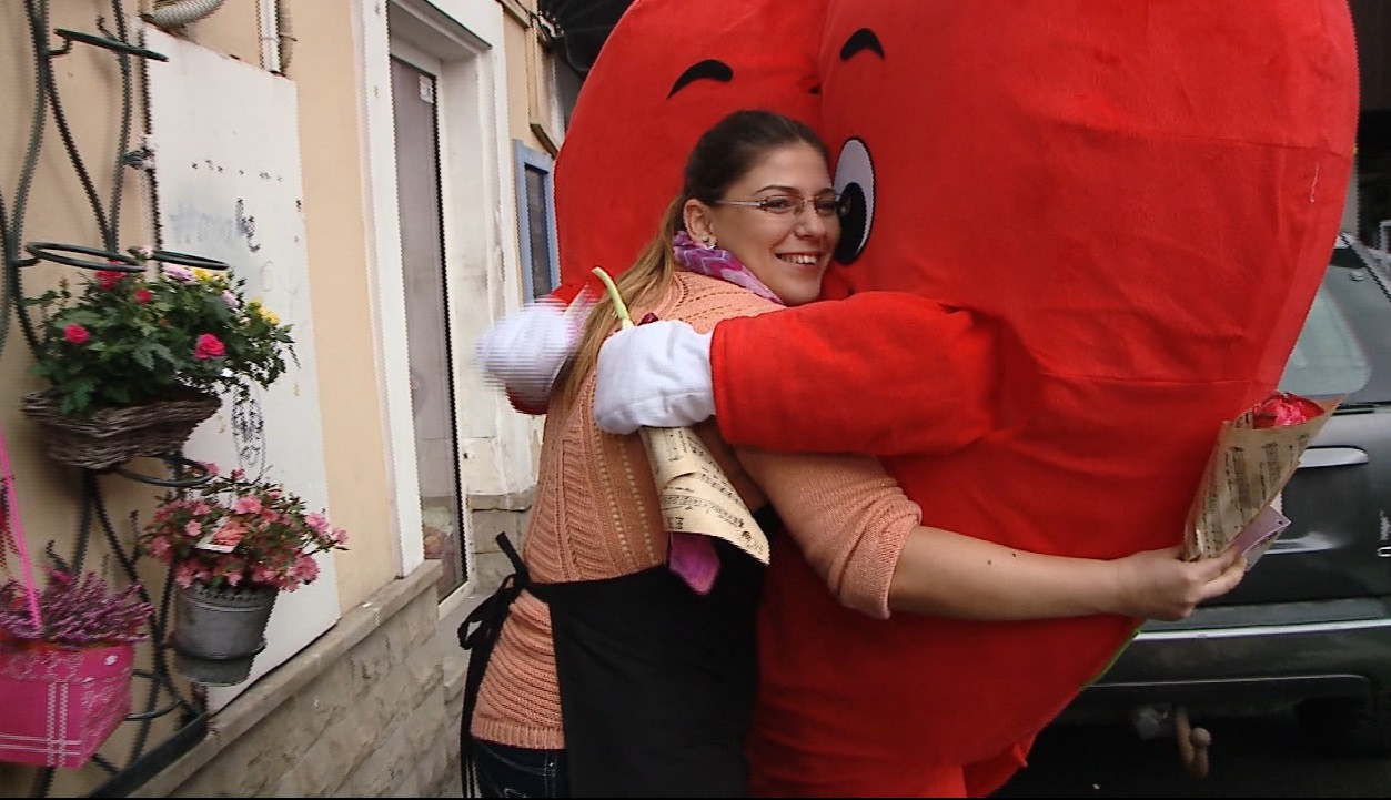 Ziua de azi, 8 martie, a adus o mare surpiza florareselor din Cluj-Napoca. Au primit flori de la membrii asociatiei Magic People, dar si o imbratisare de la inima Gigant.
