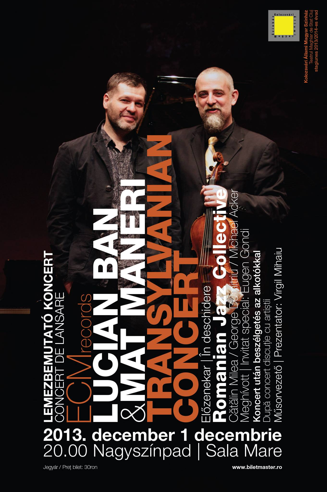 Dupa succese in lumea intreaga Lucian Ban si Mat Maneri lanseaza si la Cluj albumul „Transylvanian Concert” produs in luna mai a acestui an.