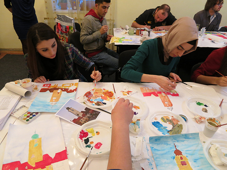 Studentii straini sositi la Universitatea ,,Lucian Blaga” din Sibiu au avut parte de o intimpinare in ritmuri de culoare. Ei si-au exersat talentul artistic in cadrul unui workshop organizat de pictorita Bianca Crucean.
