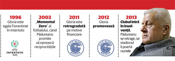 In 1995 a fost pentru o jumatate de campionat presedinte la Rapid: „Eram cu gandul tot la Gloria si atunci. In plus, Copos nu s-a tinut de cuvant”. Sub conducerea lui Padureanu, Gloria a castigat o Cupa a Romaniei in 1994 si a fost o obisnuita participanta in Cupa Intertoto. In Europa, „minutul de aur” pentru Gloria a fost in 1996, la dubla cu Fiorentina. Ardelenii au remizat la Bistrita (1-1), cu echipa celebrului Batistuta si au pierdut in Italia (0-1). Ultima participare europeana s-a consemnat in 2007, cand Gloria a pierdut dubla cu Atletico Madrid (2-1, 0-1).
