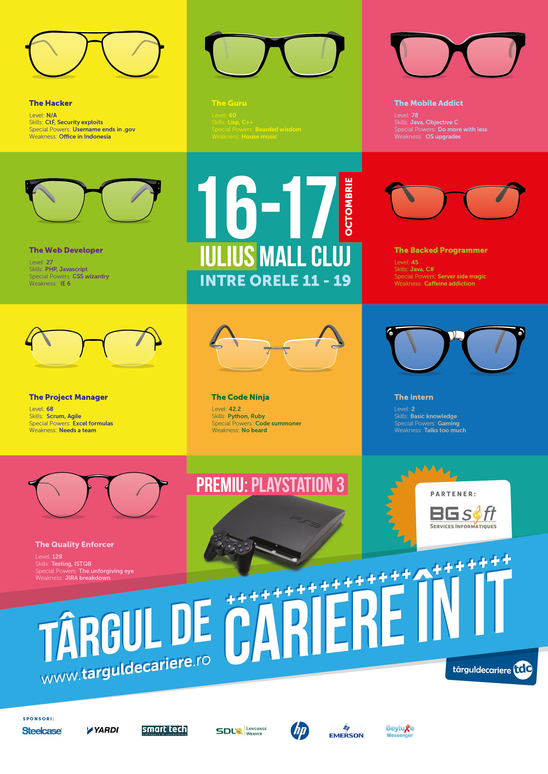 In perioada 16-17 octombrie 2013, tinerii care nu si-au gasit inca job-ul potrivit, sunt asteptati sa ia parte la prima editie a targului de cariera dedicata mediului IT si care reuneste marile companii din domeniu. O luna mai tarziu, pe 12-13 noiembrie 2013, targul isi va desfasura si a doua editie dedicata de aceasta data altor domenii precum productie si tehnica, servicii, financiar, marketing.