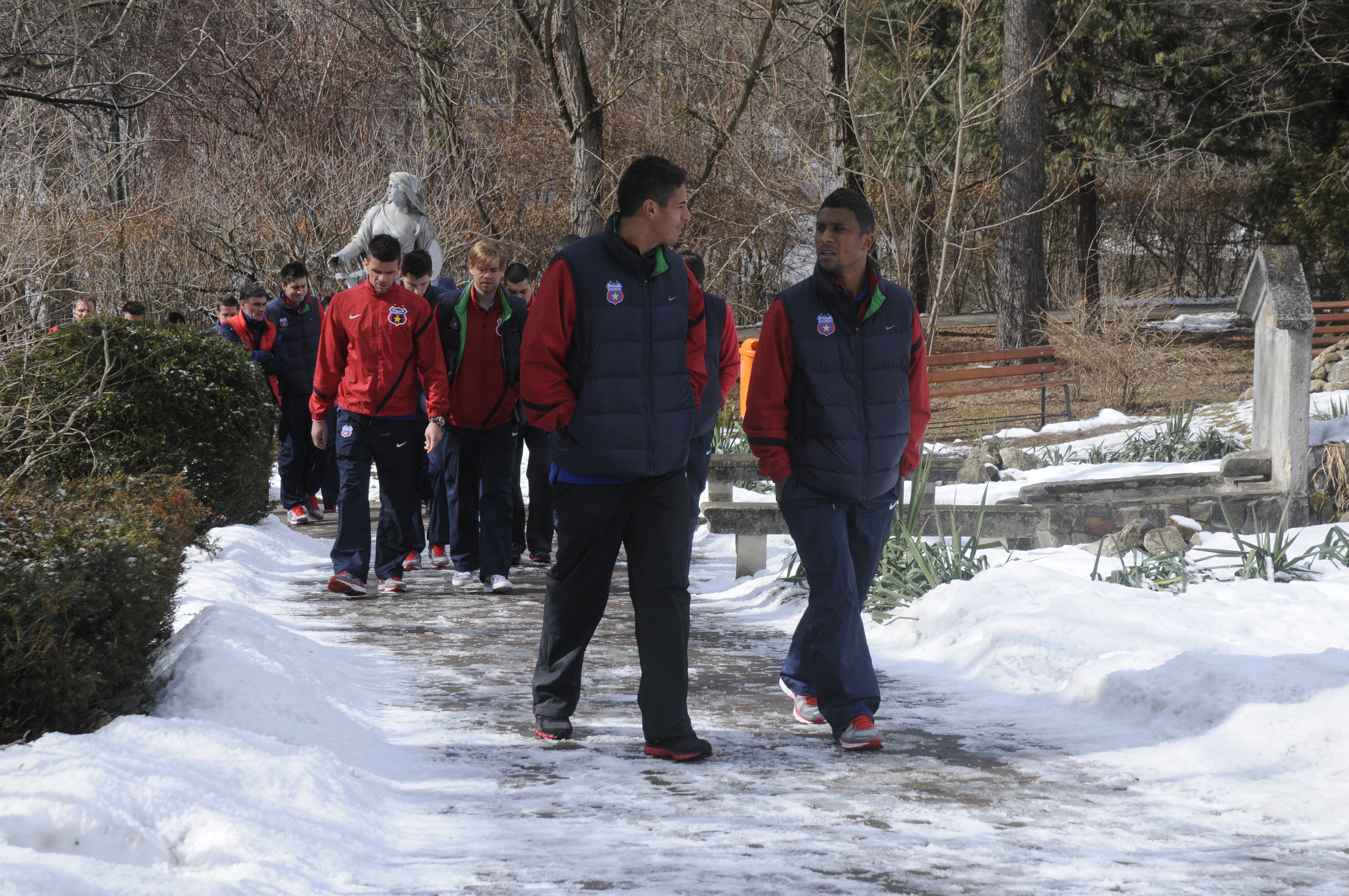 Stelistii au parasit hotelul in care sunt cazati in jurul orei 11 si au ales sa se relaxeze in Gradina Botanica, unde s-au plimbat timp de cateva minute. Mai apoi, ghidul echipei a fost mijlocasul clujeanTibi Balan, care si-a dus colegii la o sala de billiard frecventata des de el.