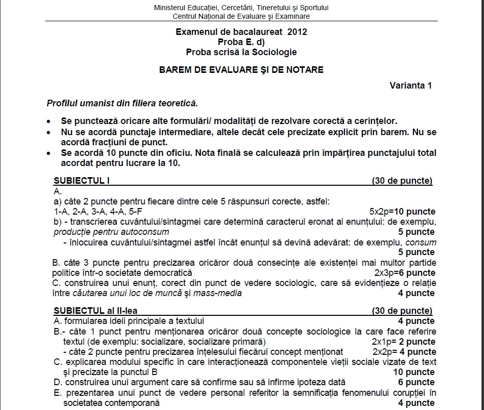 Afla care sunt subiectele la sociologie Bacalaureat 2012