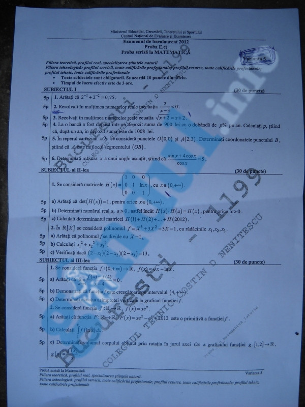 Subiectele la Matematica si Istorie de la sesiunea speciala