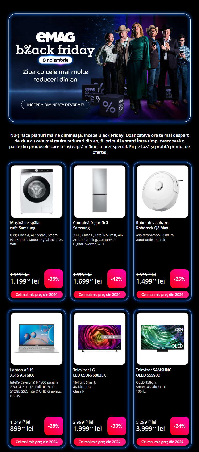 Între timp, eMAG a transmis, joi nopatea, catalogul cu produsele cu cele mai mari reduceri de Black Friday 2024.
