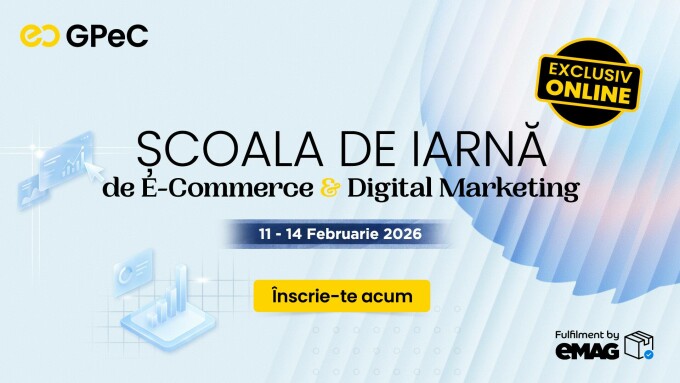 PARTENERIAT. Școala de Iarnă GPeC este un eveniment online dedicat E-Commerce-ului și Digital Marketingului, care va avea loc pe Zoom, în perioada 11–14 februarie 2026, și va putea fi accesat de participanți din orice locație.