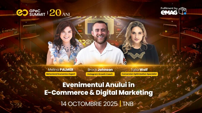 PARTENERIAT. Pe 14 octombrie are loc GPeC SUMMIT - Evenimentul Anului în E-Commerce și Digital Marketing care se va desfășura la TNB și este considerat cel mai important eveniment de profil din Europa Centrală și de Est, ajuns la al 20-lea an de tradiție.