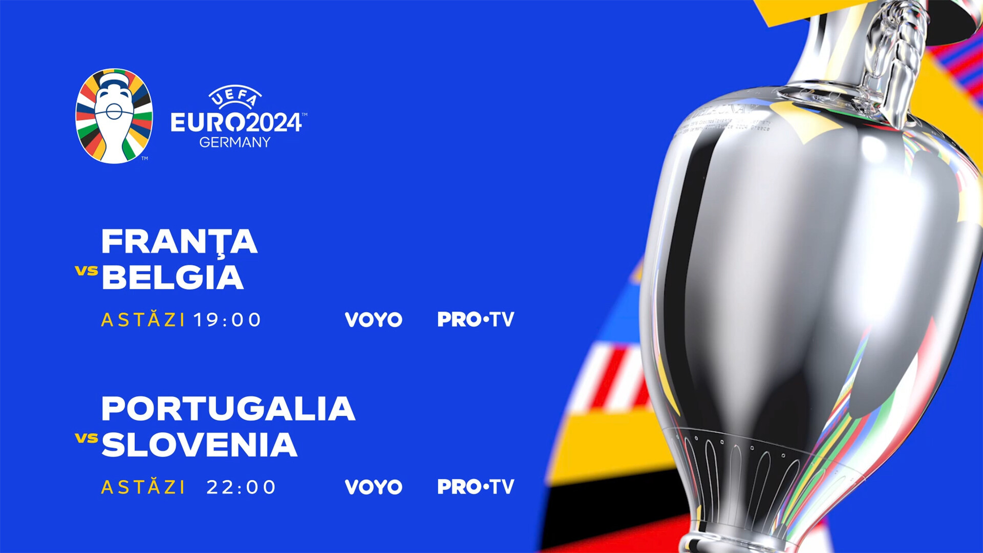 Două zile din această etapă s-a competiției s-au dus, două au mai rămas! Ambele meciuri ale zilei se vor vedea, în direct, la PRO TV și pe VOYO! De la ora 19:00, cei de acasă au întâlnire cu Franța și Belgia, iar de la 22:00, Ronaldo și ai lui revin pe teren pentru meciul Portugalia – Slovenia.