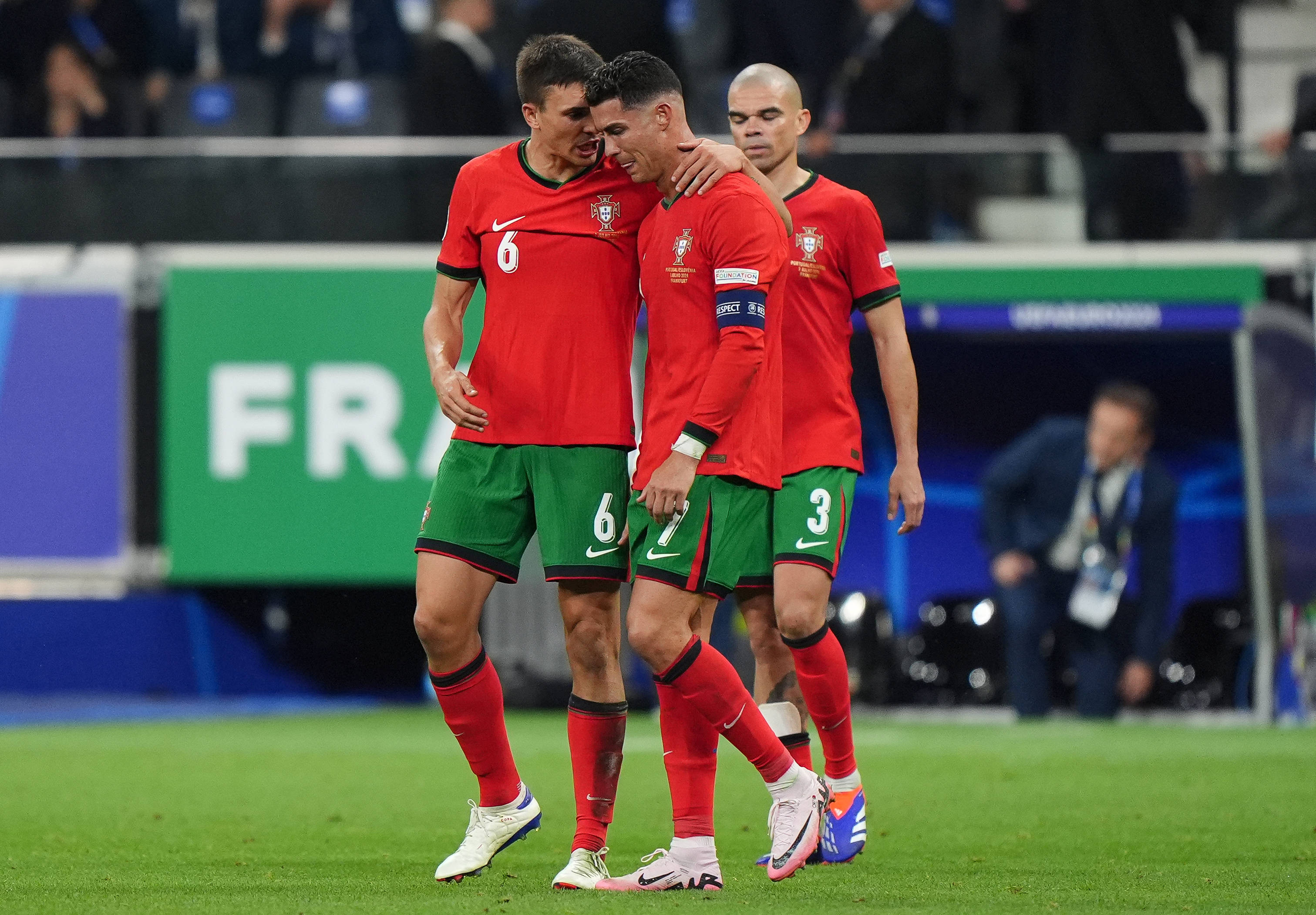 Imediat arbitrul a fluierat finalul primei reprize de prelungiri, iar Ronaldo a fost surprins de camere plângând în hohote.