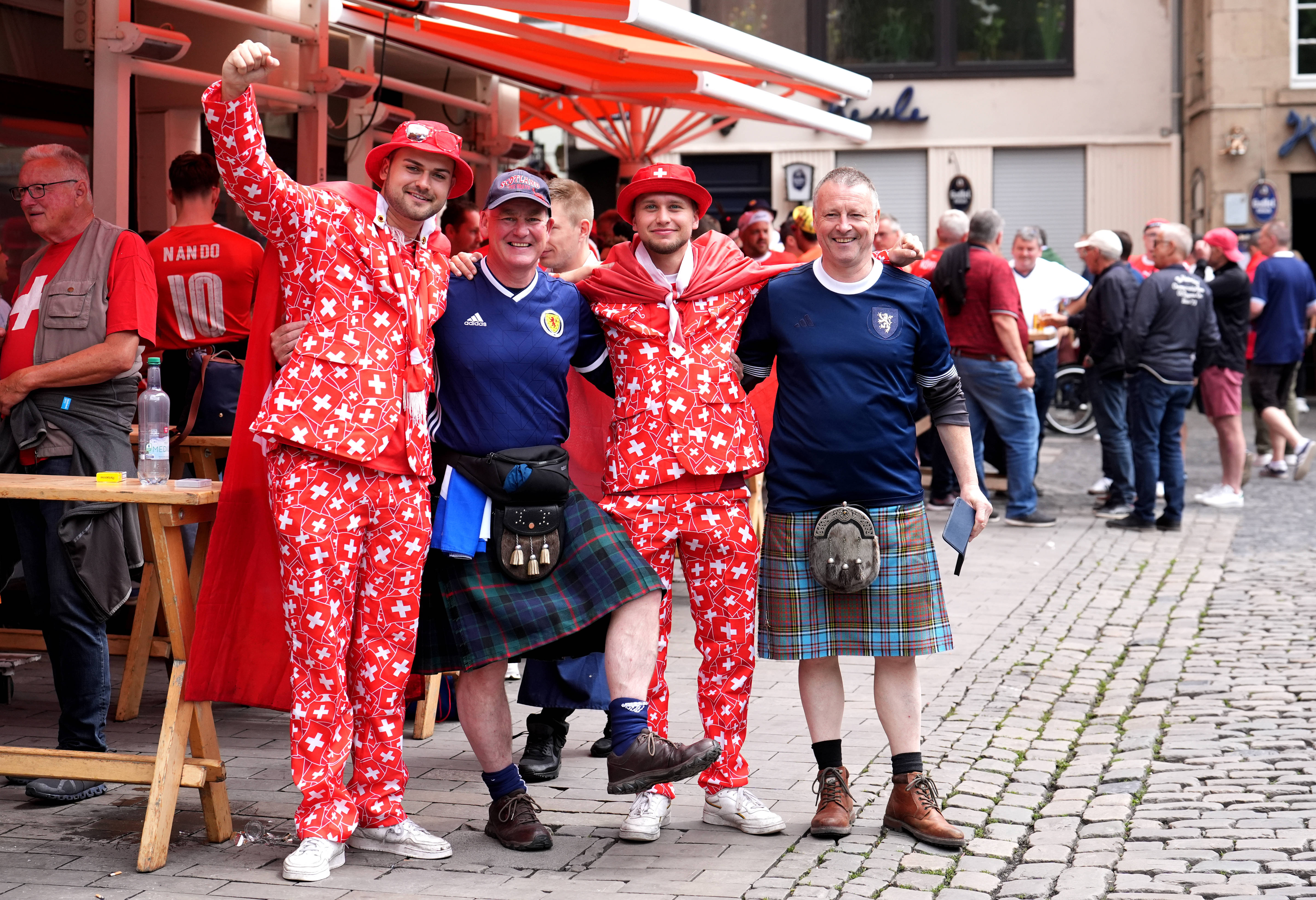 Scoțienii și elvețienii fac spectacol în tribunele stadionului din Koln unde naționalele lor se înfruntă în al doilea lor meci la EURO 2024. Astfel, în timp ce scoțienii pot fi văzuți peste tot în kilturile specifice și cântând la cimpoi, elvețienii dovedesc un umor genial, cel puțin prin afișul purtat de suporter: ”Noi nu suntem Suedia” (Elveția este Switzerland, în engleză - n.red.)
