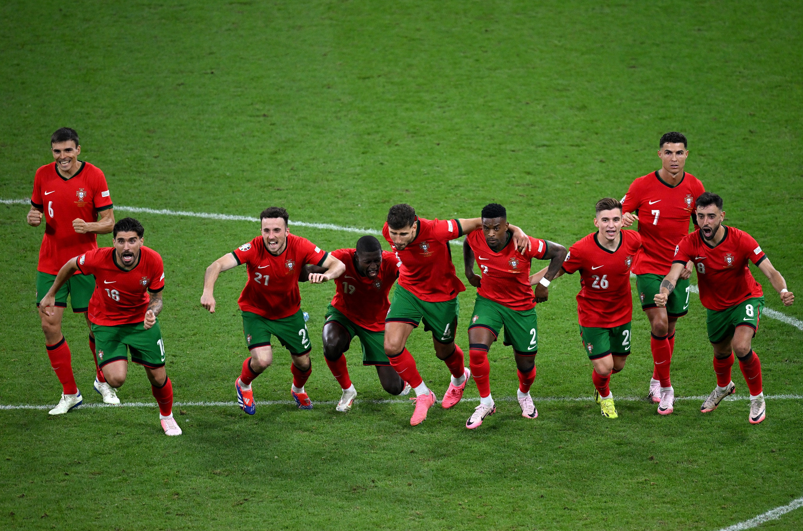 De la ora 22:00, Portugalia și Slovenia au fost față în față într-un meci încărcat de surprize. Deși posesia a aparținut portughezilor într-o proporție covârșitoare, de peste 70%, scorul la finalul celor 90 de minute a fost 0-0, după ce Ronaldo a ratat surprinzător un penalty. Nici cele două reprize de prelungiri nu au adus schimbări pe tabela de marcaj, așa că s-a ajuns la lovituri de departajare. Acolo, portarul portughezilor a făcut minuni și nu a încasat niciun gol după primele trei încercări, în timp ce Ronaldo, Fernandes și Silva au reușit să marcheze. Astfel, Portugalia merge mai departe și va întâlni Franța, în sferturi.