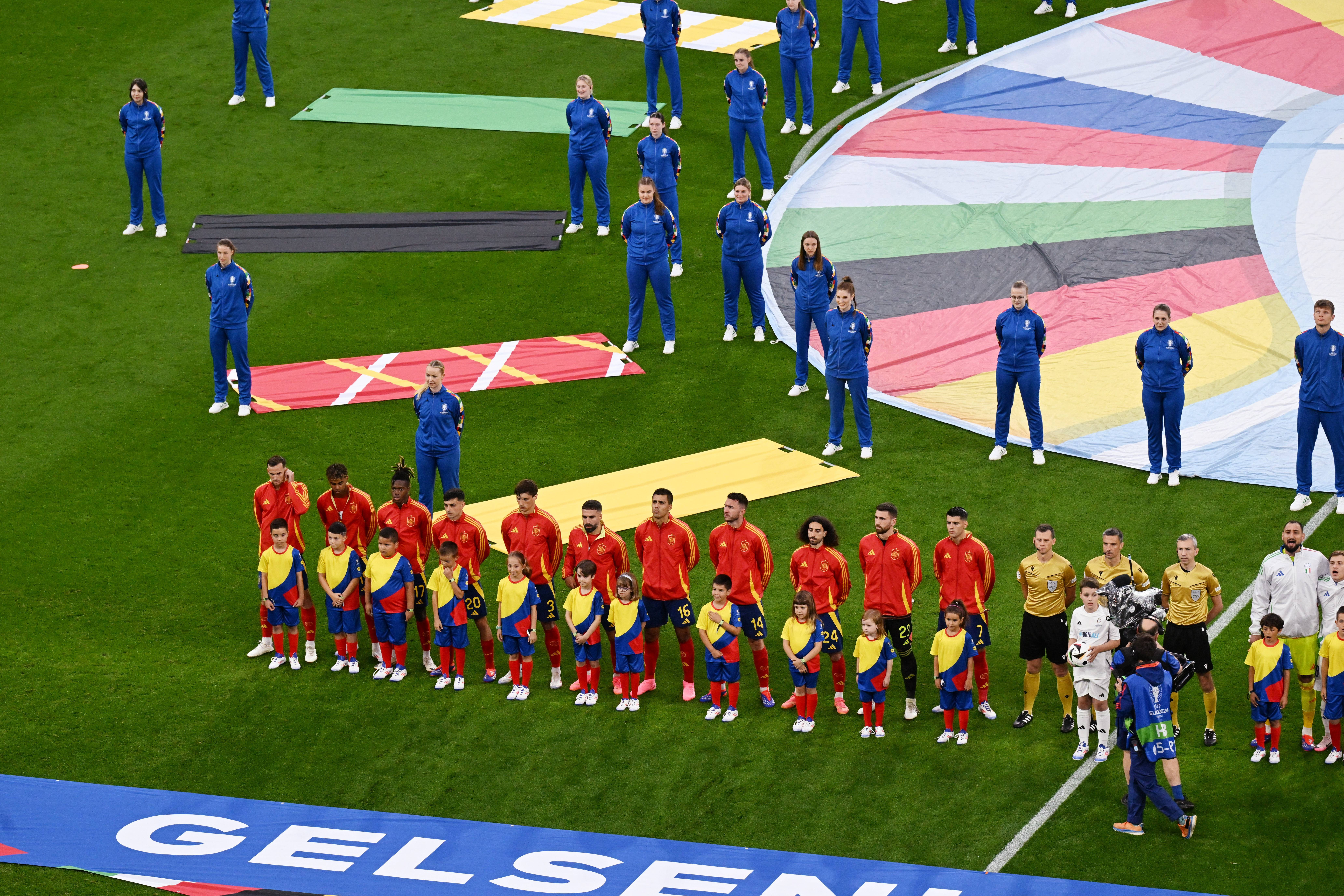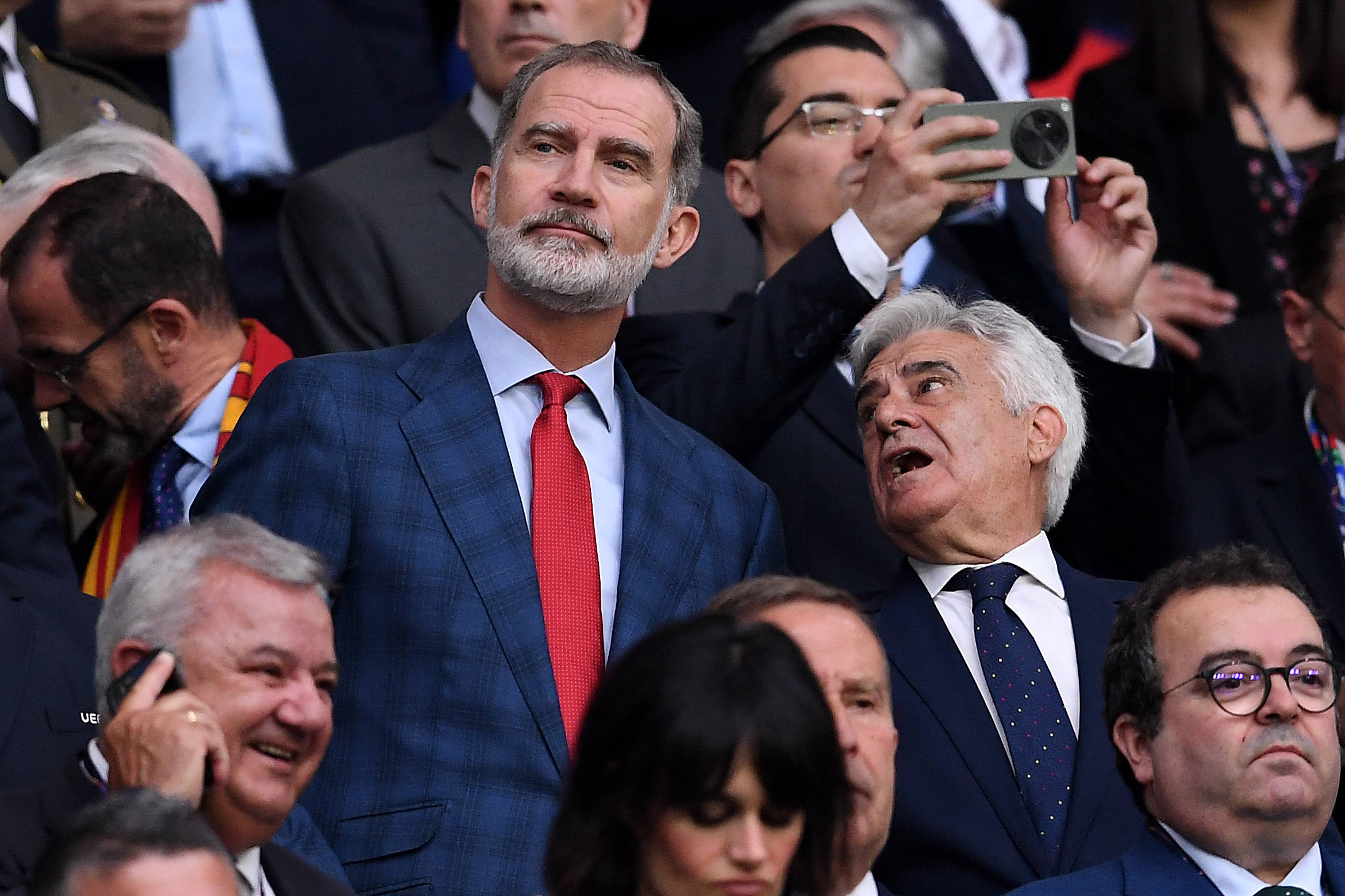 Regele Felipe al Spaniei și Xabi Alonso, spaniolul devenit deja legendă în Germania, după câștigarea titlului cu Bayer Leverkusen, sunt suporterii de lux ai acestui meci.