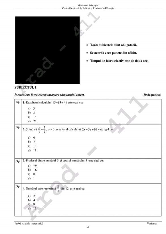 Subiectele și baremul de corectare vor fi publicate pe site-ul edu.ro al în cursul zilei, după încheierea probei și când toți elevii sunt ieșiți din sălile de examen.