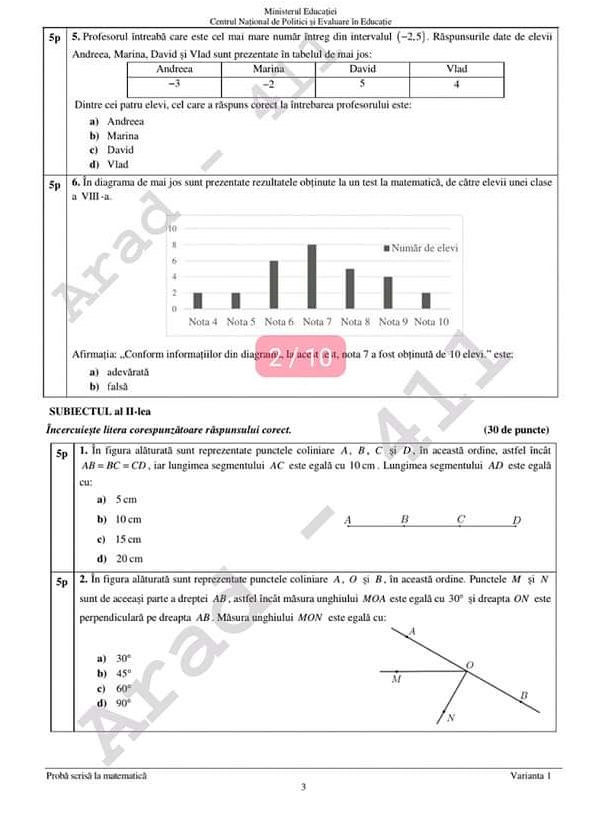 FOTO: Subiectele la Matematică de la Evaluare Națională 2023 au fost publicate