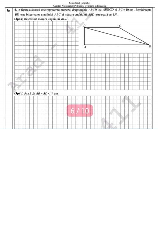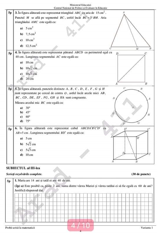 La proba de Matematică este permisă realizarea unor figuri geometrice (cu creion sau stilou/ pix de culoare albastră) în spaţiul pus la dispoziţie pentru rezolvarea problemelor.