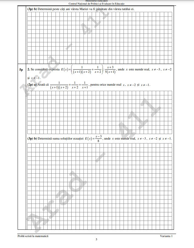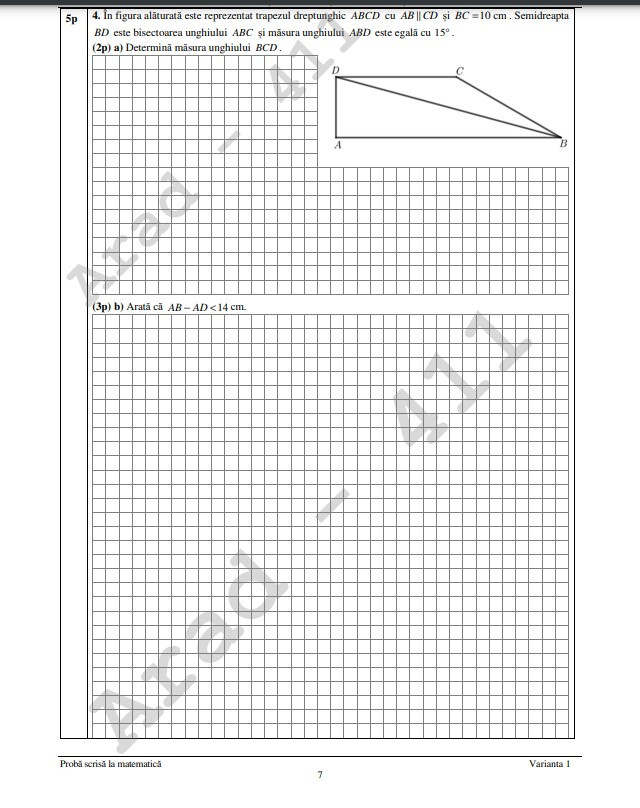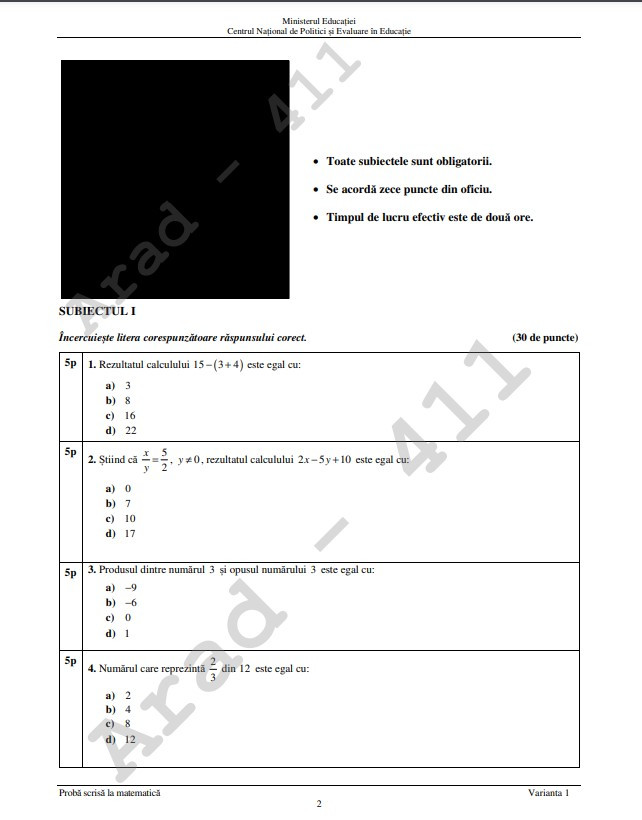 Știrile ProTV au obținut broșura parțială cu subiectele la Matematică.