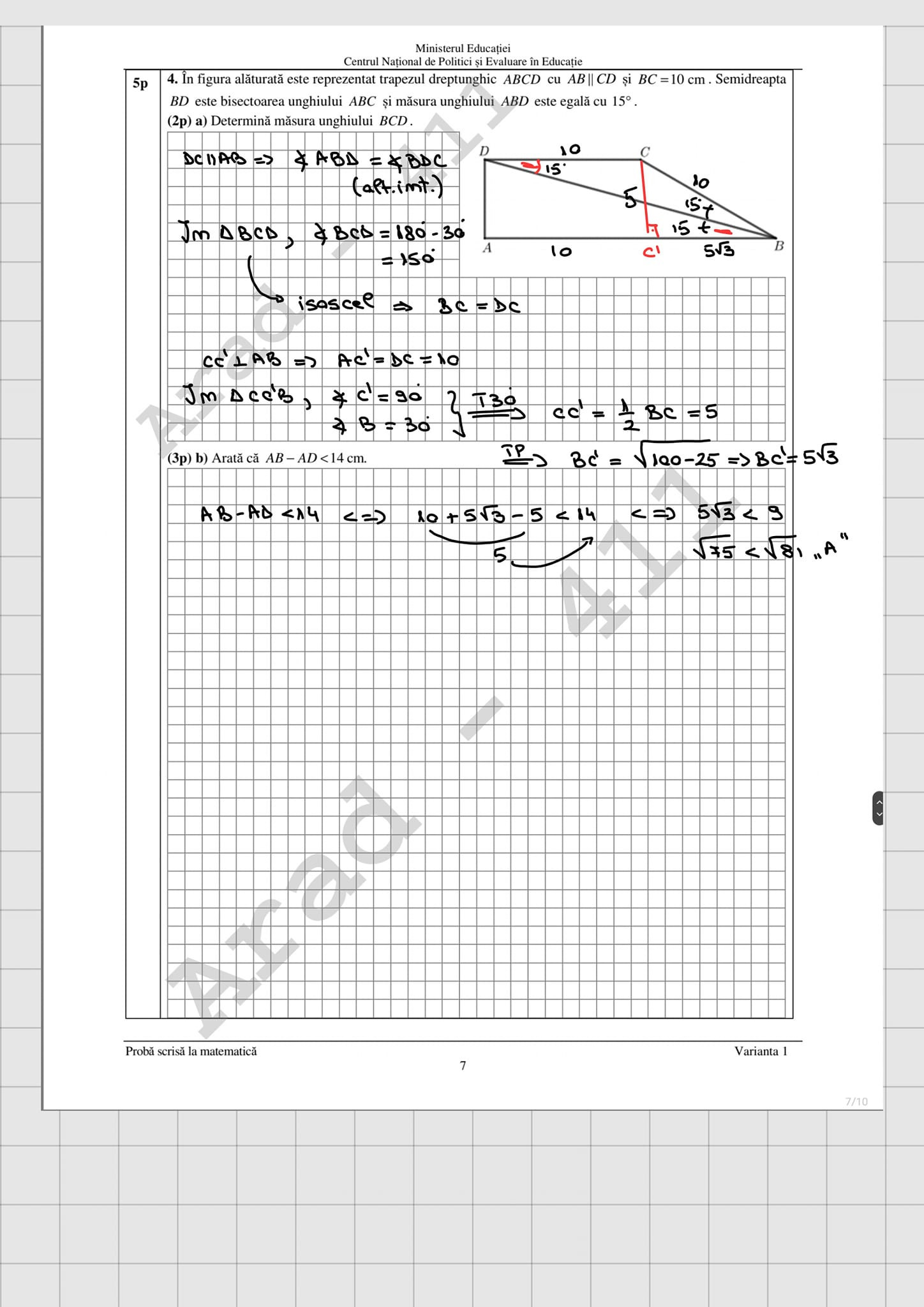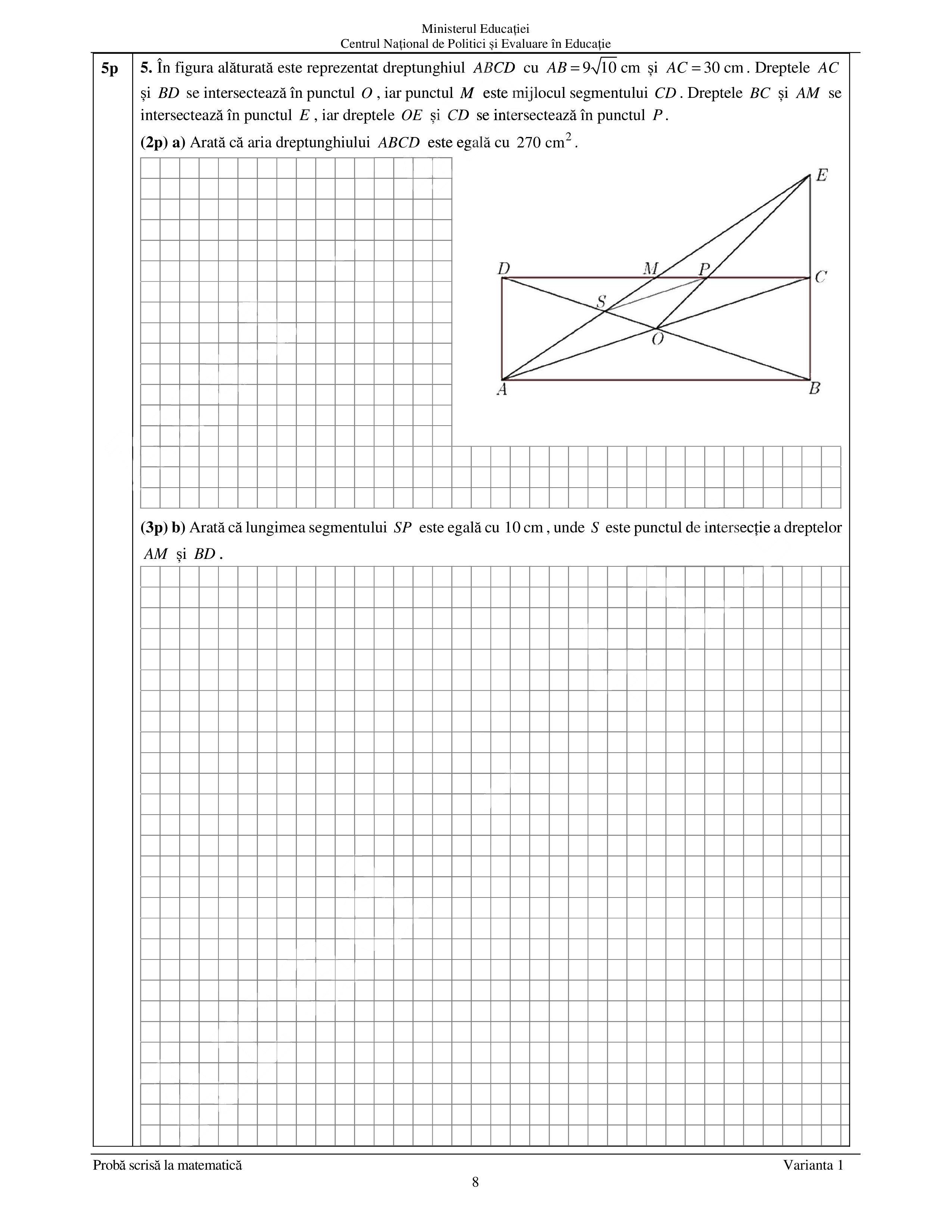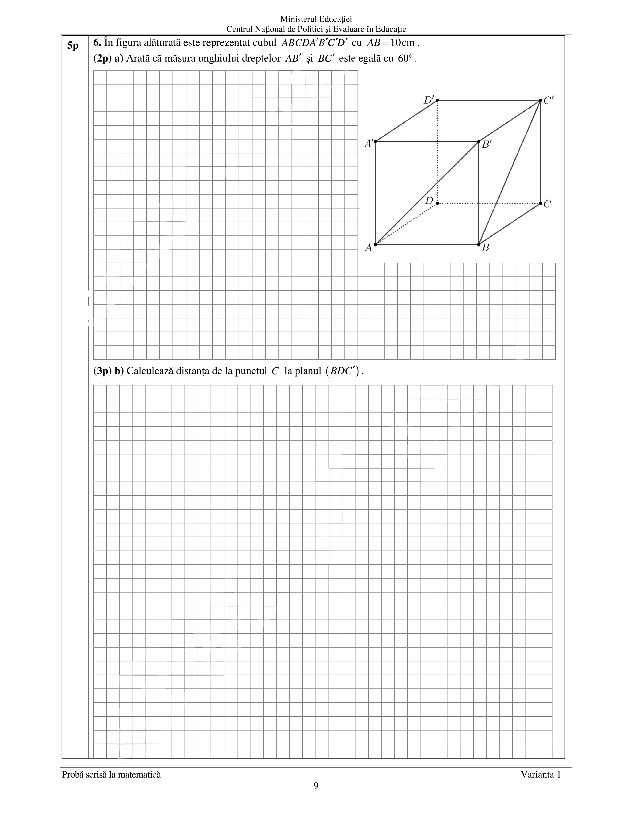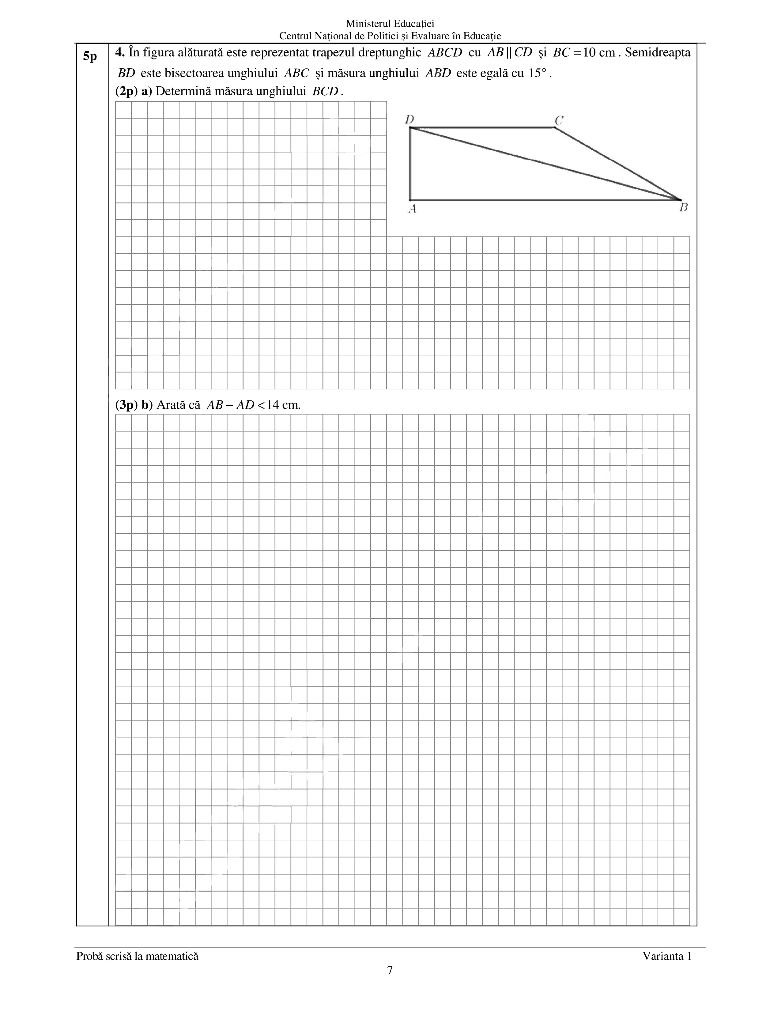 La proba de Matematică este permisă realizarea unor figuri geometrice (cu creion sau stilou/ pix de culoare albastră) în spaţiul pus la dispoziţie pentru rezolvarea problemelor.