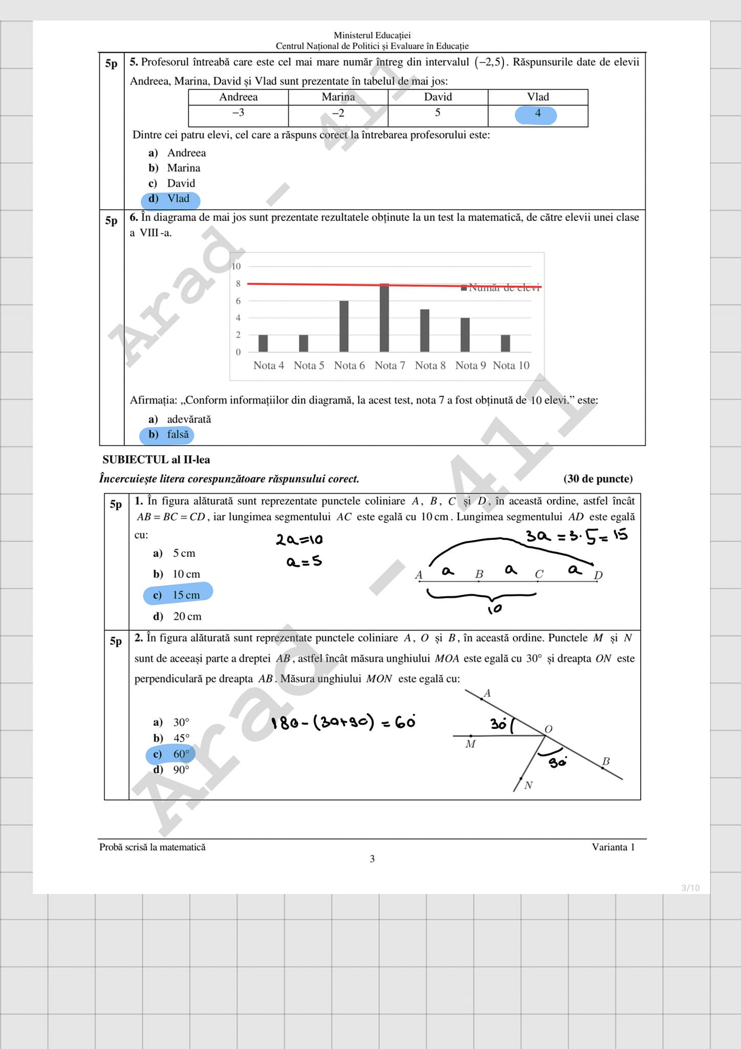 De asemenea, elevii trebuie să știe că la exercițiile de geometrie și la figurile de la proba de Matematică sunt permise marcajele pe figură şi completarea figurilor cu creion sau stilou/pix de culoare albastră.