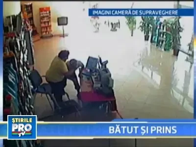 A inceput apoi sa-i care palme si pumni in cap. Barbatul s-a zbatut sa scape, dar n-a avut sanse. Extrem de furioasa, vanzatoarea l-a dat la un moment dat si cu capul de birou.