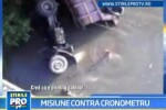"O basculanta a zburat de pe pod direct in apa, iar soferul e prins acolo!"