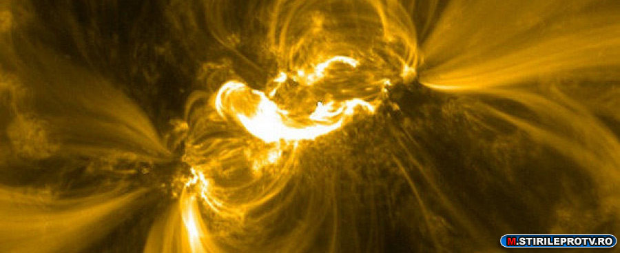 Observatorul Dinamicii Solare al NASA (n.r. Solar Dymamics Observatory) a inregistrat o flama extrema de radiatii ultraviolete, localizata la mijlocul discului solar.
