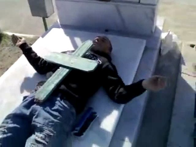 Din "recuzita" tinerilor nu a lipsit o cruce de lemn, smulsa de pe cine stie unde, care le-a servit acestora pentru a-si pune in practica toate fanteziile bolnave.
