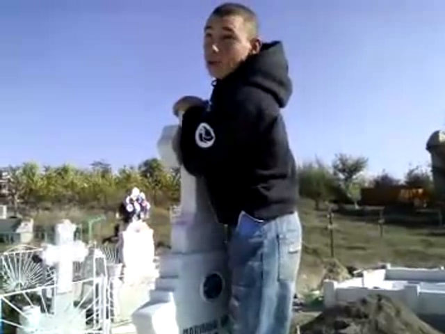 Fara pic de respect pentru cei trecuti in nefiinta, "Profanatorul de morminte" nu a avut nicio problema in a simula acte sexuale langa cruci sau chiar tolanit pe lespedea de piatra a unui mormant.