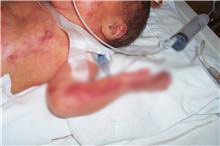 Primul dintre ei cantarea la nastere 1,8 kilograme si nu implinise o saptamana cand salonul in care se afla a fost cuprins de flacari. I-au ars manutele, degetele, fata si pieptul. Peste 40% din suprafata corpului a fost afectata, inclusiv caile respiratorii. Dar a fost bine ingrijit, iar pielea lui s-a regenerat, nu are urme si cantareste 2,2 kilograme.