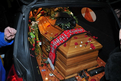 De asemenea, la stadion a sosit si echipa de handbal din Veszprem, Ungaria, adica oficialii de club si colegii lui Marian. Cu totii au pornit apoi alaturi de Marian, spre biserica si cimitir, pe ultimul sau drum.