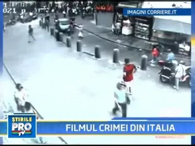 Imaginile cu romanul nevinovat, nimerit dintr-o intamplare intr-un schimb de focuri intre mafiotii din Napoli, sunt singurele dovezi pe baza carora politistii inca ii cauta pe criminali.