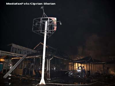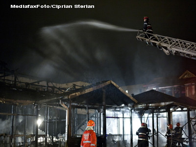 In total, focul a distrus peste 30 de tarabe, iar acoperisul din lemn al pietei a fost distrus pe o suprafata de 600 de metri patrati.
