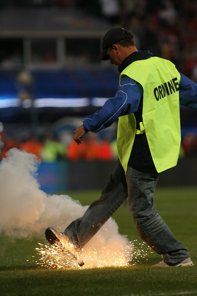 Derbiurile Steaua - Dinamo au fost intotdeauna precedate ori s-au incheiat cu evenimente violente in care au fost implicati suporterii celor doua echipe. Asa ca, nimeni nu si-ar fi permis o confruntare sangeroasa intre cele doua galerii, mai ales ca la inceputul saptamanii autocarul Stelei a fost atacat cu pietre de un presupus suporter alb-rosu. Pawel Golanski, fundasul Stelei, a ajuns atunci la spital cu capul spart.