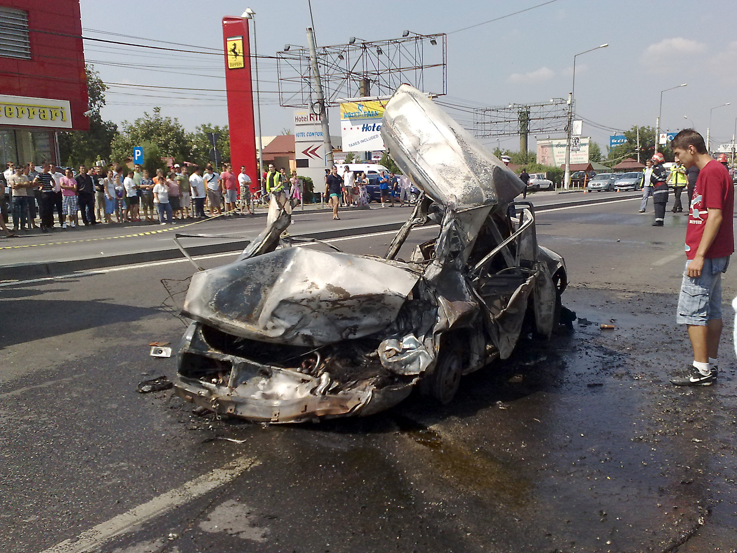 Pentru ca Dacia era alimentata cu GPL a luat foc instantaneu si a explodat. Pasagerii, mama, tatal si copilul lor, au sfarsit carbonizati.