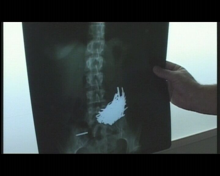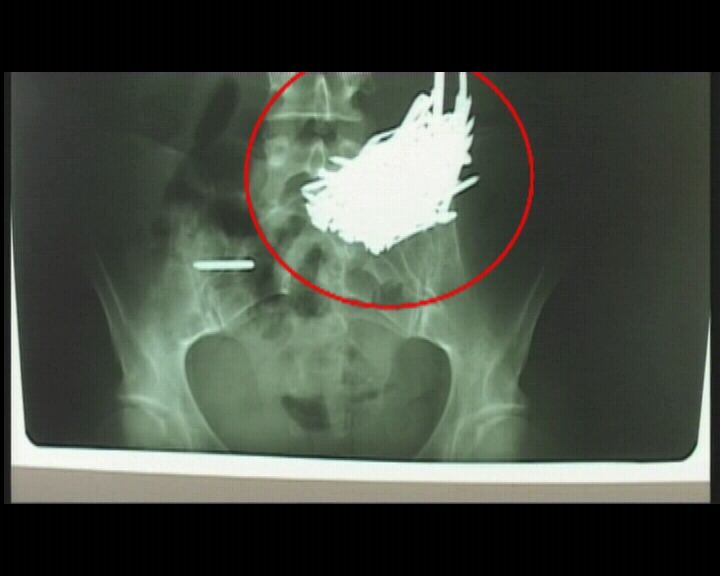 Medicii, socati, i-au facut o radiografie si au observat cuiele, care din stomac au coborat catre intestinul gros. Din fericire, spun ei, niciun cui nu a ramas pe trahee.