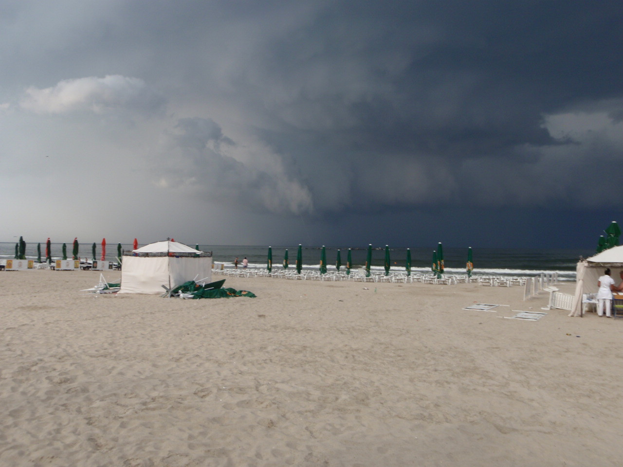 In prima faza s-a innegrit cerul. Apoi a inceput sa sufle vantul cu putere pentru ca in cele din urma, la cateva sute de metri departare de mal, sa apara doua trombe marine, dupa cum le numesc specialistii. Ambele ridicau in aer cu furie apa din mare. Practic, aratau ca niste tornade de intensitate ceva mai mica.