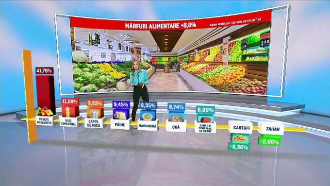 De la un an la altul plătim mai mult pentru mâncare, în medie, cu 9%. Cele mai importante creșteri s-au văzut la fructele proaspete – de peste 40%, dar prețurile sunt mai mari și la pâine, ulei, ouă, carne sau lapte.