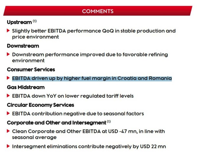 Rezultatele au fost susţinute de un sezon rutier stabil şi de vânzările solide de carburanţi, marjele la combustibil consolidându-se datorită contextului favorabil de preţuri în Croaţia şi România.
