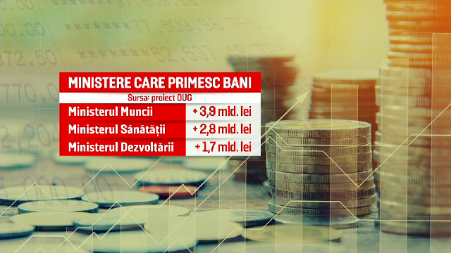 Marele câştigător al rectificării bugetare este Ministerul Muncii, care primeşte o suplimentare de 3,9 miliarde de lei. La Sănătate vor fi 2,8 miliarde de lei în plus, şi la la Dezvoltare - 1,7 miliarde de lei.