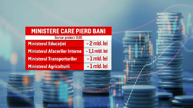 În schimb, Ministerul Educaţiei are un minus de 2 miliarde de lei, bani alocaţi pentru un proiect cu fonduri europene care nu a mai fost realizat. Alte ministere importante - Afacerile Interne, Transporturile şi Agricultură, au şi ele scăderi de buget de 1 miliard de lei la rectificare.