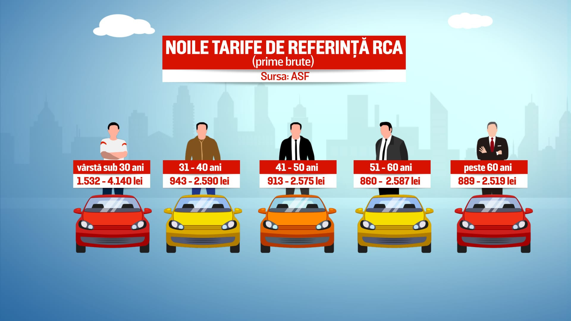 La polul opus este un șofer între 51 și 60 de ani, cu o mașină de capacitate mică, sub 1.200 cmc, pentru care tariful de referință este de 860 de lei acum, cu aproape 100 de lei în plus față de acum șase luni.