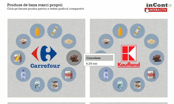 Vezi pe incont.ro infograficul cu produse de baza marci proprii de la hipermarketurile din Romania