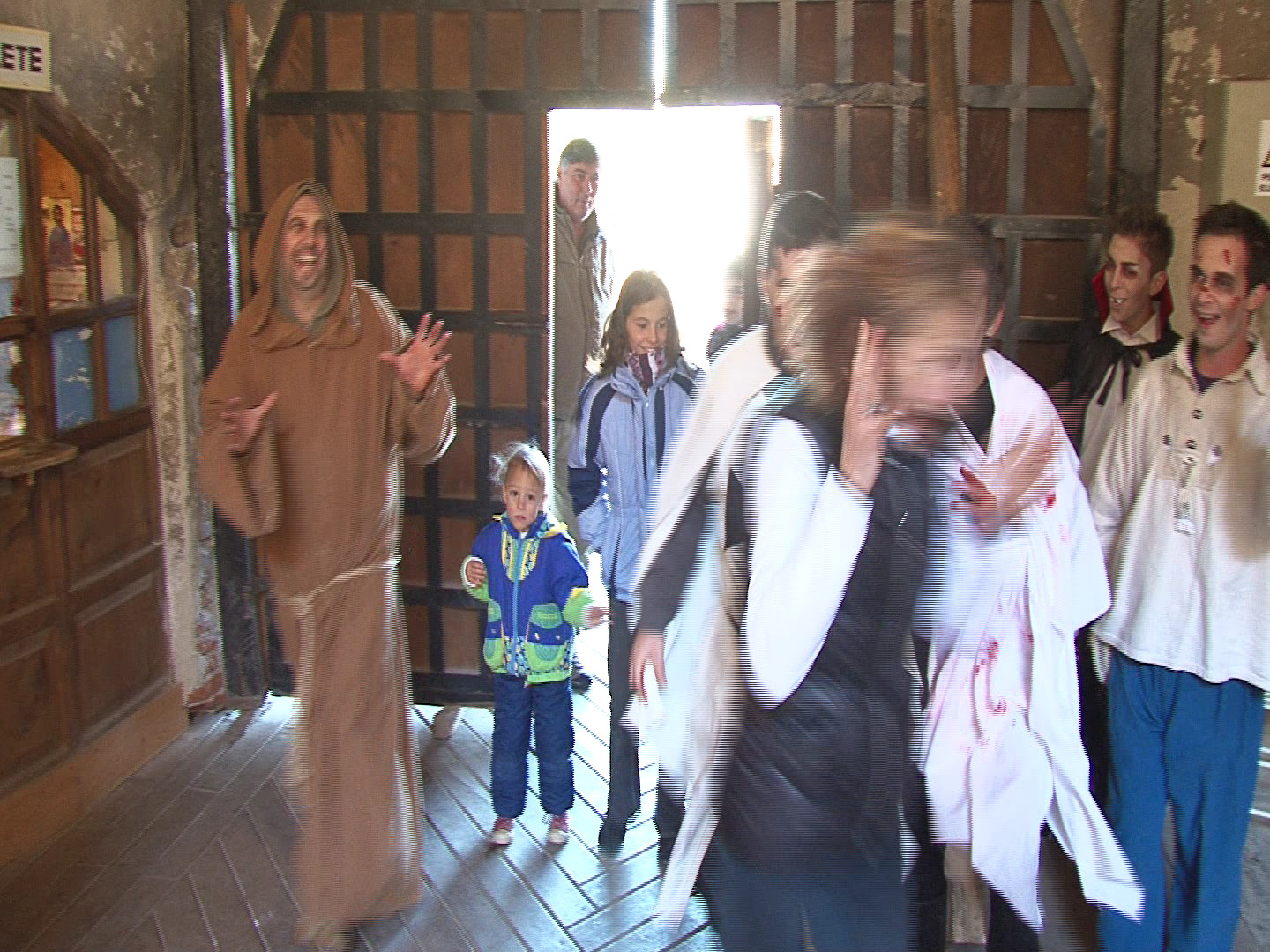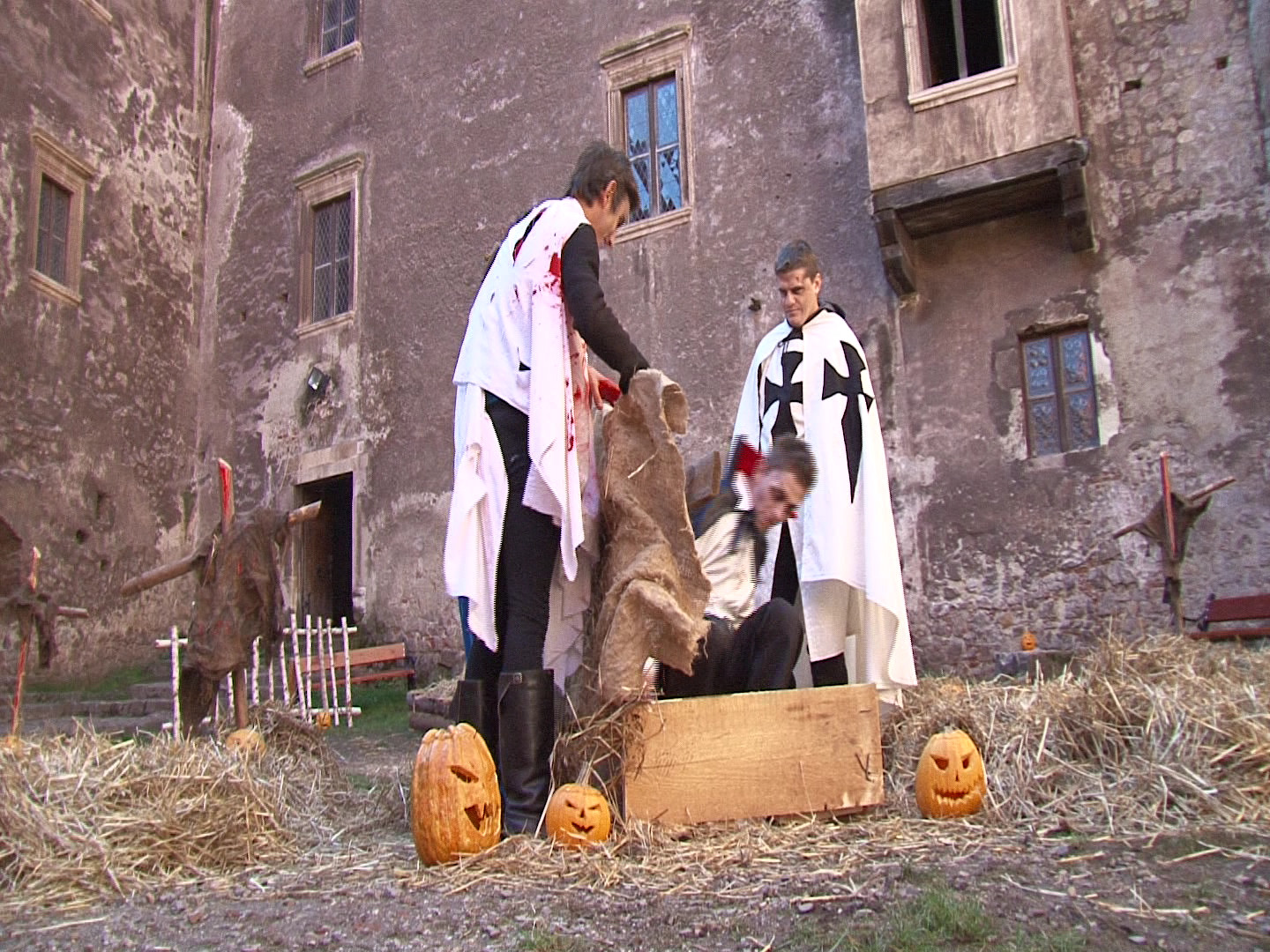 Domnite-stafii, cavaleri-zombi, Contele Dracula si alte creaturi infricosatoare au "bantuit" miercuri Castelul Corvinilor din Hunedoara si au speriat turistii care au vizitat astazi monumentul.