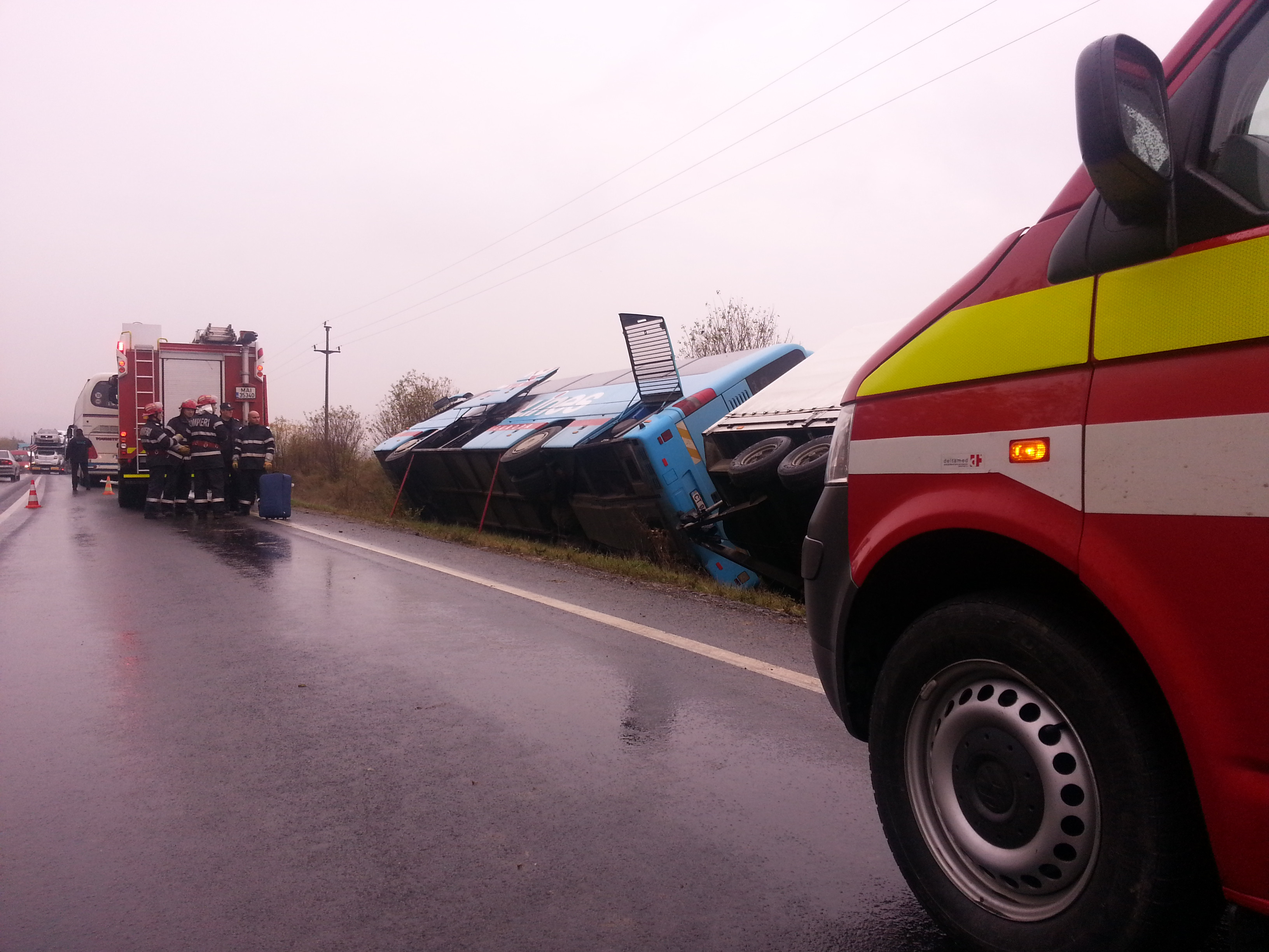 Potrivit purtatorului de cuvant al Politiei Judetene Hunedoara, inspector principal Bogdan Nitu, un autocar care circula de la Constanta spre Belgia s-a rasturnat in afara DN 7, in zona localitatii Turmas.