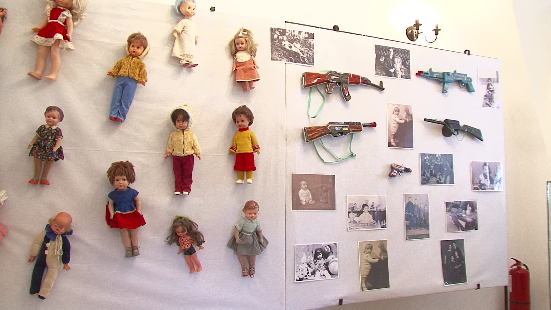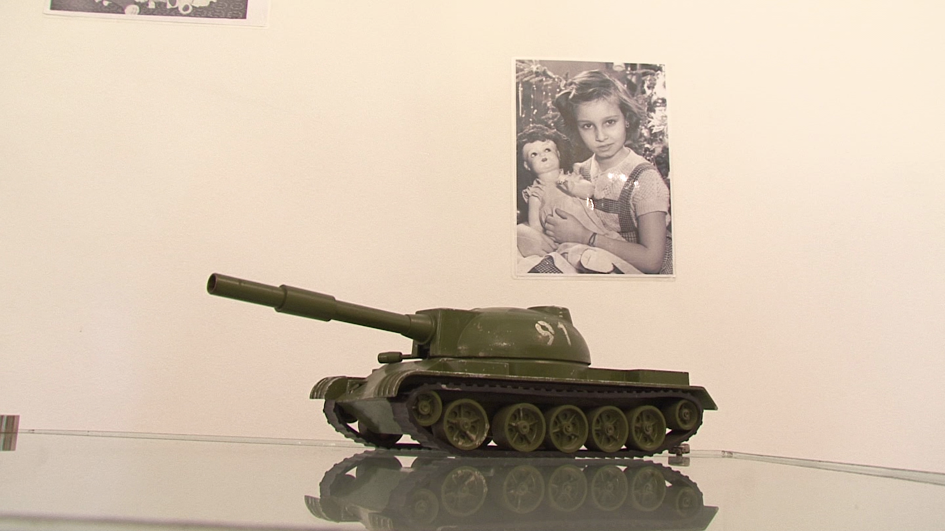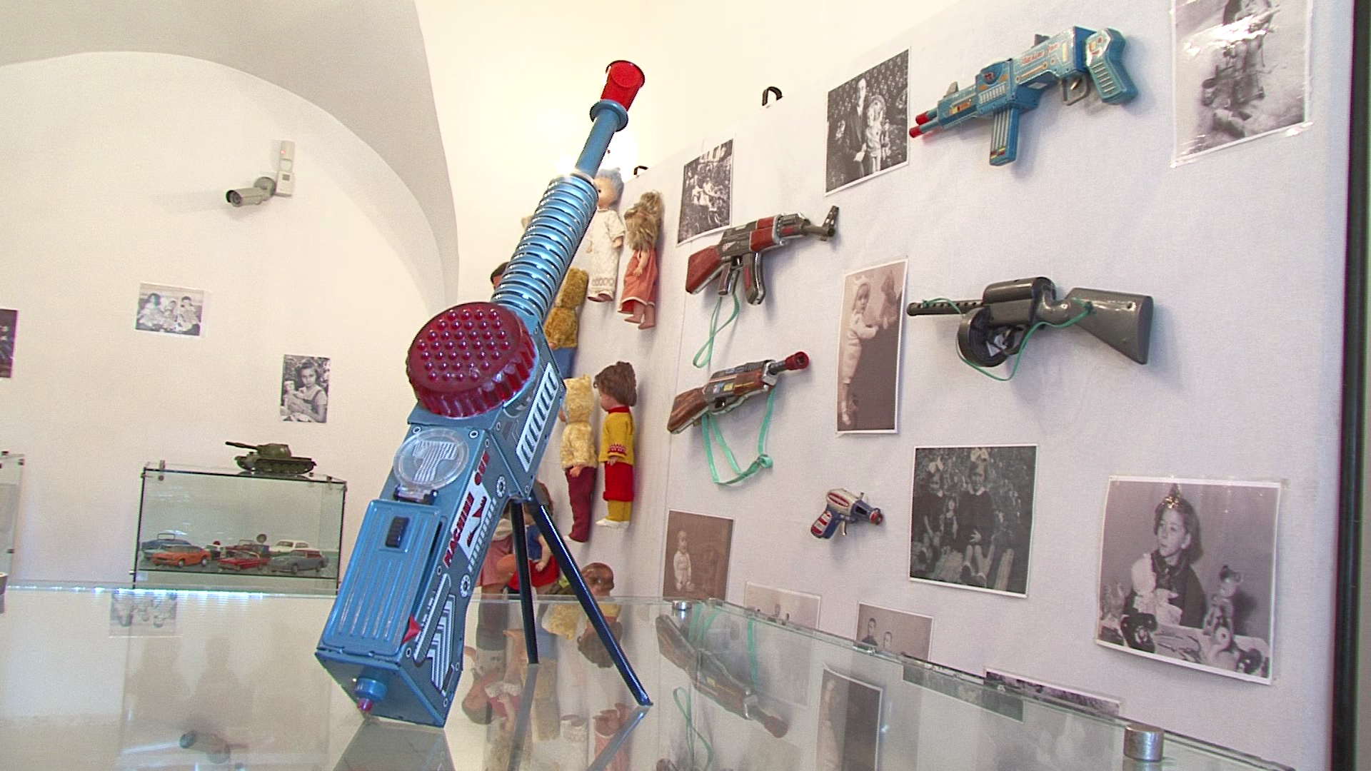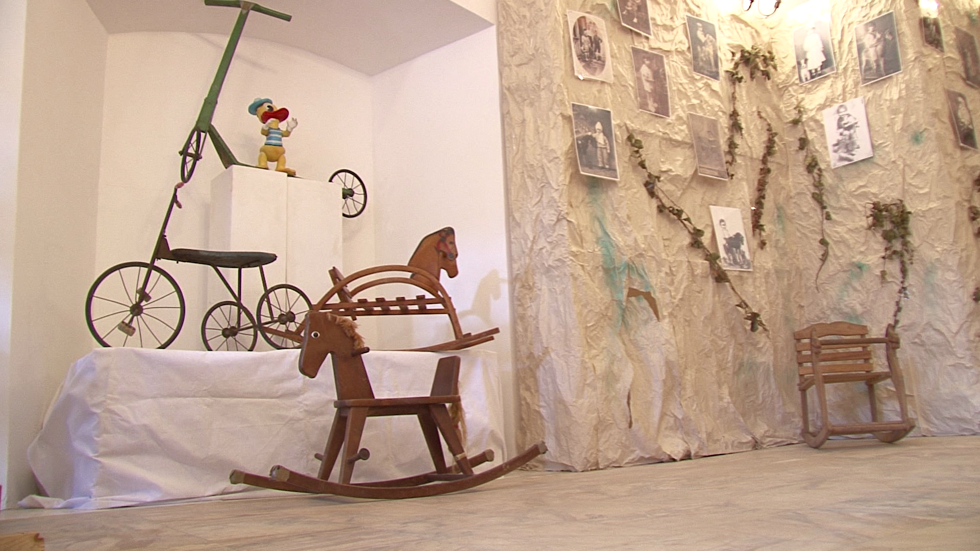 Impreuna cu jucariile sunt expuse si reproduceri dupa fotografii vechi ce infatiseaza copii alaturi de jucarii.